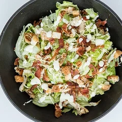 Alface americana, croutons, frango grelhado, bacon e molho caesar.
